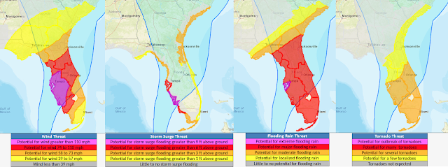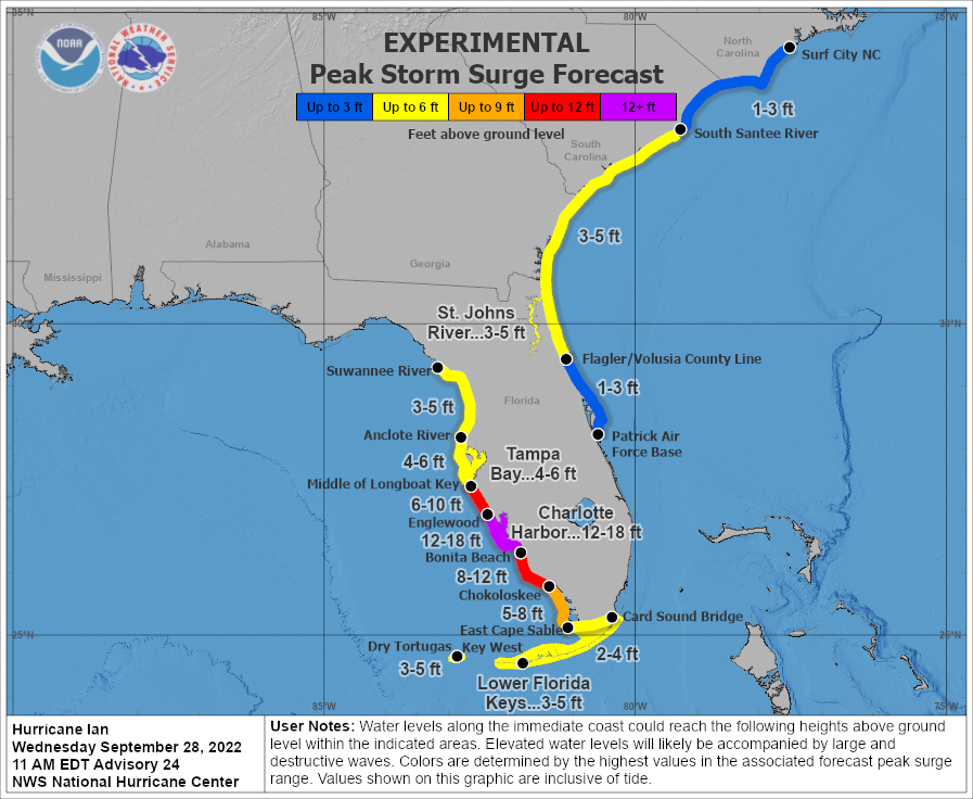 As expected, Ian rapidly intensified and became the season's second major hurricane on Tuesday morning. (A "major hurricane" is simply defined to be a Category 3+ hurricane on the Saffir-Simpson Scale). It crossed the western tip of Cuba and the eye is now back over water. It is forecast to make landfall in the Tampa area as a Category 3-4 hurricane on Wednesday night.